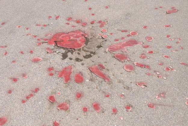 A Sarajevo Rose Mortar Shell Damage Filled With Red Resin